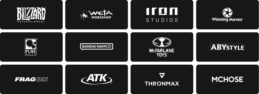 Blizzard / Weta Workshop / Iron Studios / PureArts / Bandai Namco / Winning Moves / AbyStyle / Dark Project / FragON / ATK / VXE/ MCHOSE / FGG / Thronmax